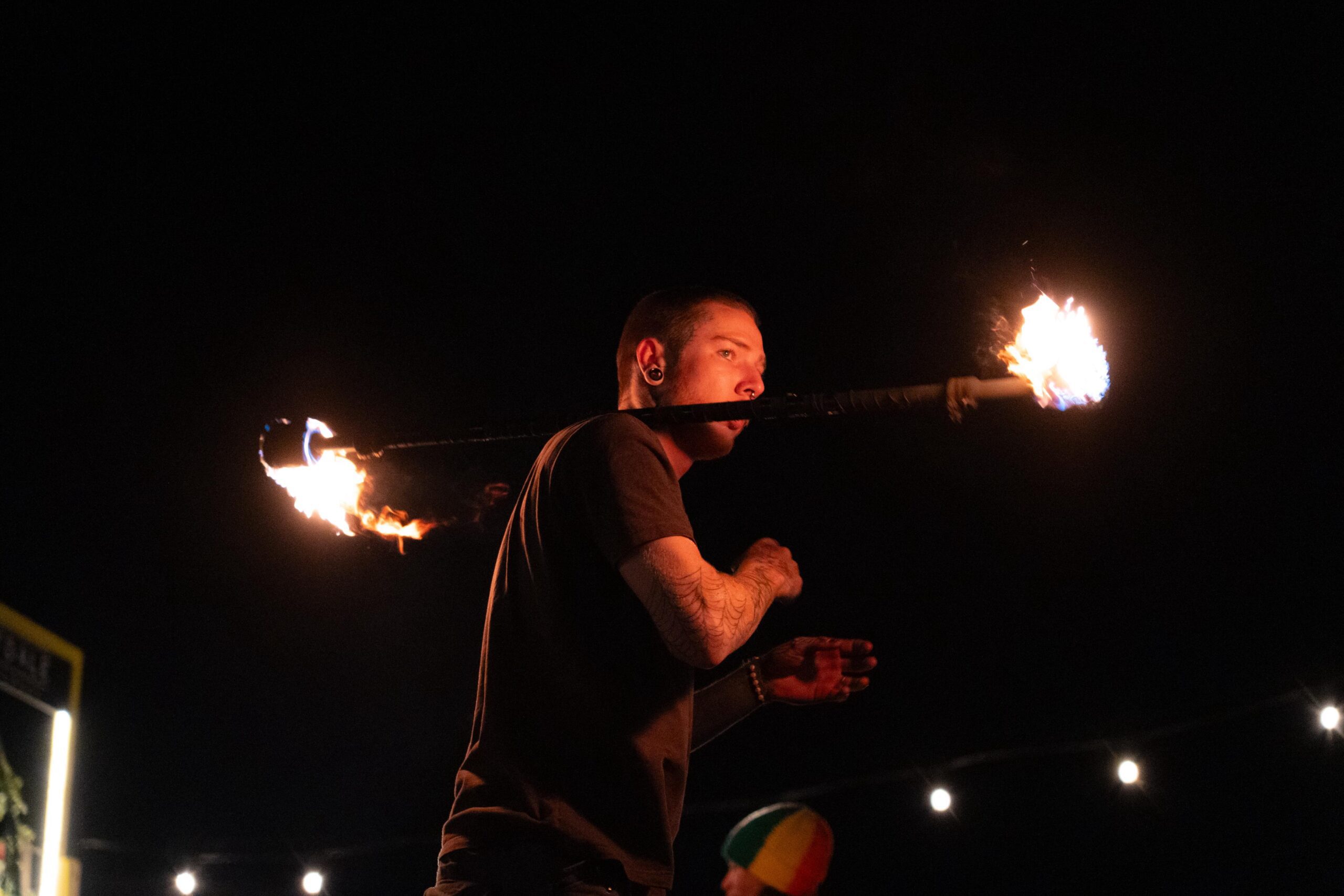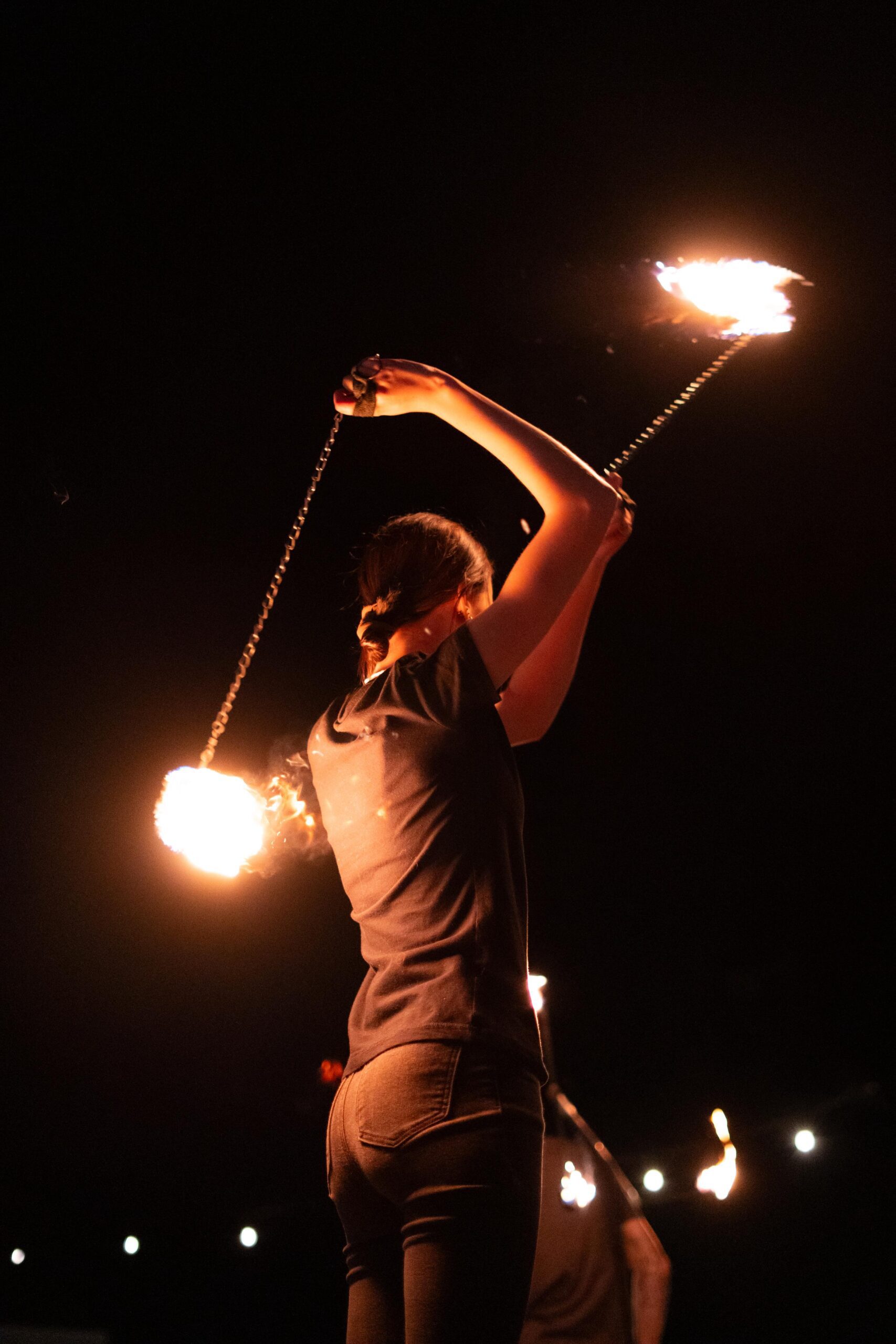 We perform freestyle and flow naturally with what we have learned through flow arts, we combine different movements to create visually appealing, exciting and engaging interaction with crowds for any event. We prioritize safety in every situation, ensuring our guests, crowds and fire performers are safe, secure and comfortable at all times with the flame. We practice weekly to ensure our bodies are in tip-top shape to give you a show to remember. While flowing naturally and safely is a priority for us. We can also do more structured and in-sync performances, where every movement has a purpose to capture, engage and truly impress a crowd of any magnitude, function, event or festival.